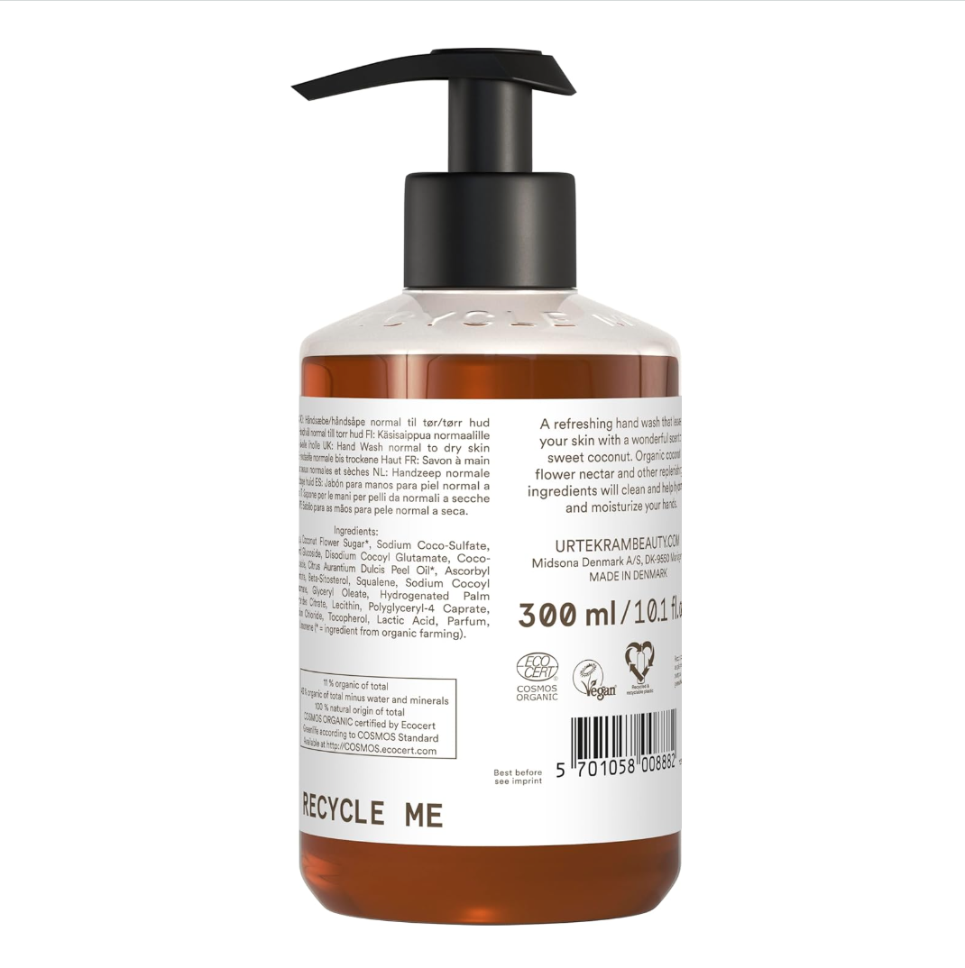 Urtekram Jabón para manos de coco líquido con dispensador, deja tus manos limpias y suaves. Para piel normal a seca, el jabón de manos Urtekram Coconut contiene néctar de coco orgánico y un delicioso aroma a coco natural.